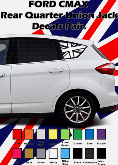 Ford C-MAX MK2 Rear Quarter Union Jack Decals Pair – Self Adhesive Gloss Car Stickers